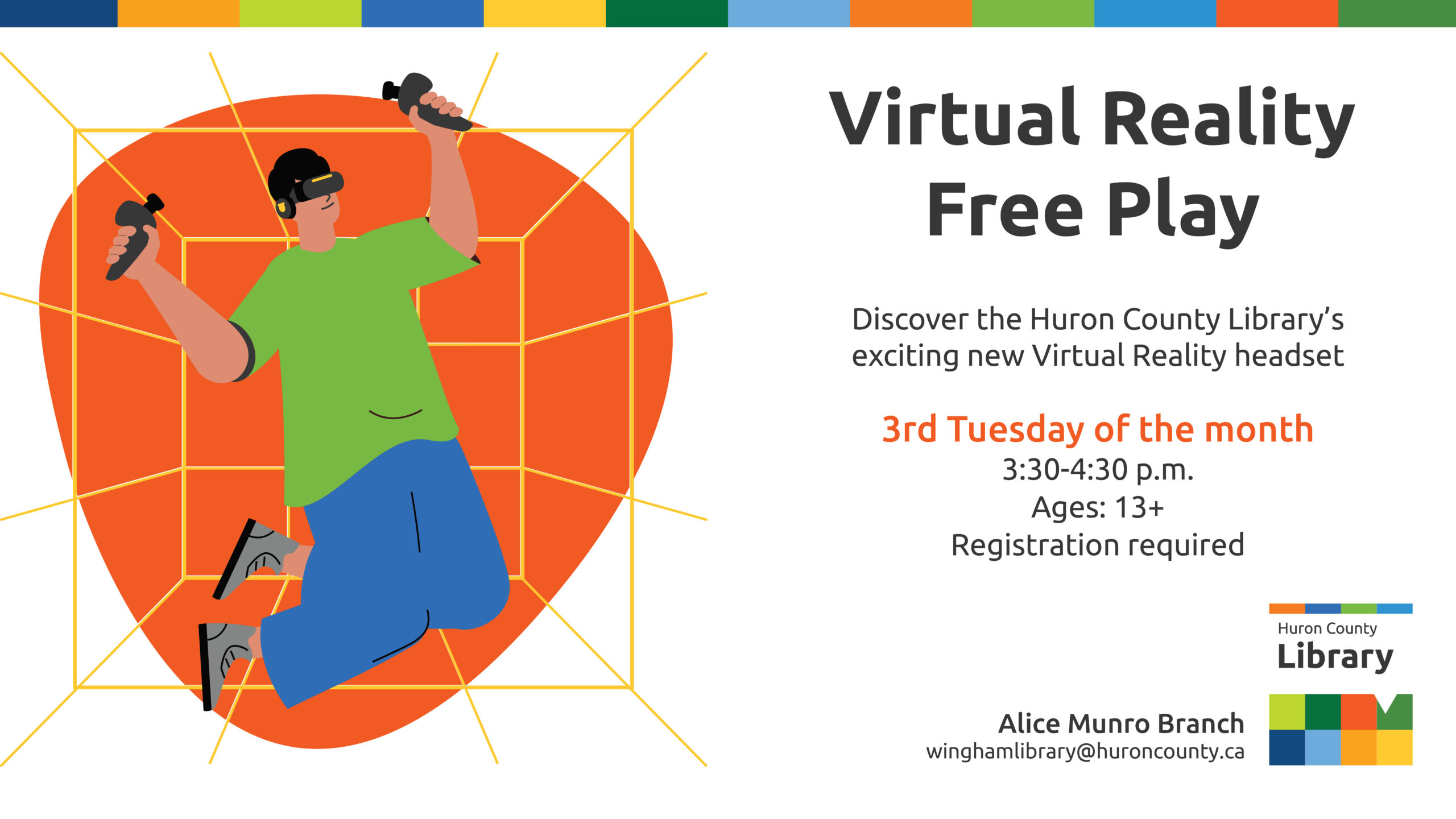 REGISTRATION: Please contact the Alice Munro Branch to book your 30 minute VR experience! 519-357-3312 or email winghamlibrary@huroncounty.ca